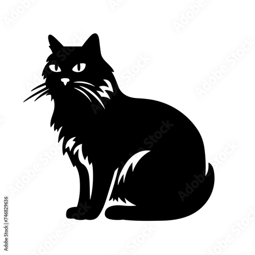 © Ilona, Obraz premium cat black and white vector illustration isolated transparent background logo, cut out or cutout t-shirt print design