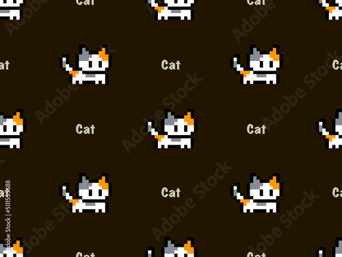 © Eakkarach, Obraz premium Cat cartoon character seamless pattern on black background.