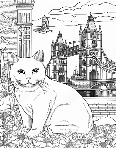 Naklejka premium Cat coloring page illustration For relaxation, cat lovers, can vent for both...