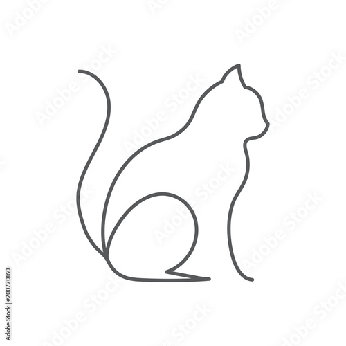 Naklejka premium Cat continuous line drawing - cute pet sits with raised tail side view isolated on white background.