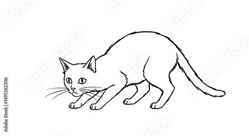 © arizhal, Fototapeta premium Cat Crouching Sketch Black and White Vector Illustration