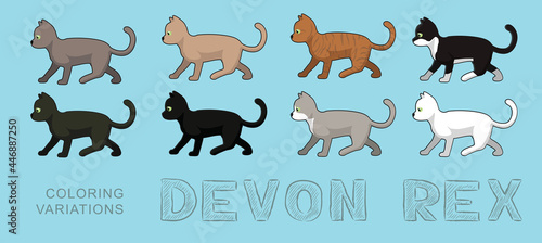 Fototapeta premium Cat Devon Rex Coloring Variations Vector Illustration
