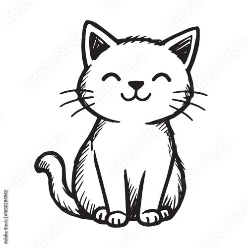 Obraz premium Cat Doodle Black and White Illustration Vector Image Cute Kitten Sketch Line...