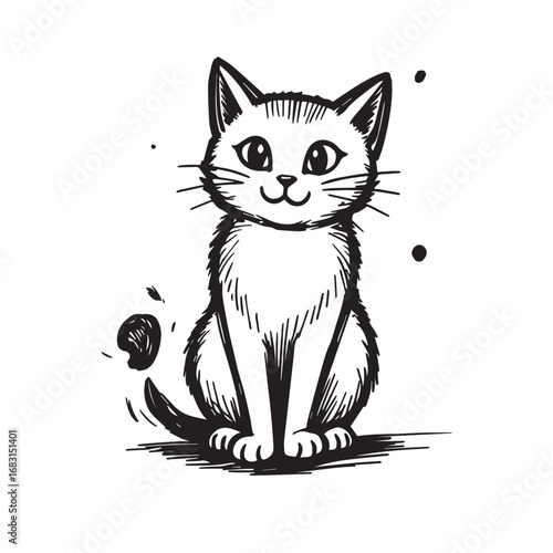 © Zahid, Obraz premium Cat Doodle Black and White Illustration Vector Image Cute Kitten Sketch Line Art Drawing Silhouette