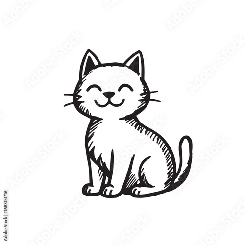 © Zahid, Obraz premium Cat Doodle Black and White Illustration Vector Image Cute Kitten Sketch Line Art Drawing Silhouette