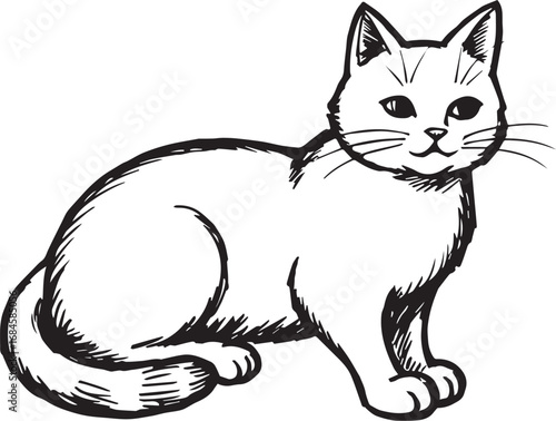 © Tiko, Obraz premium Cat Doodle Black and White Illustration Vector Image Cute Kitten Sketch Line Art Drawing Silhouette