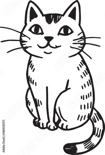© Tiko, Obraz premium Cat Doodle Black and White Illustration Vector Image Cute Kitten Sketch Line Art Drawing Silhouette