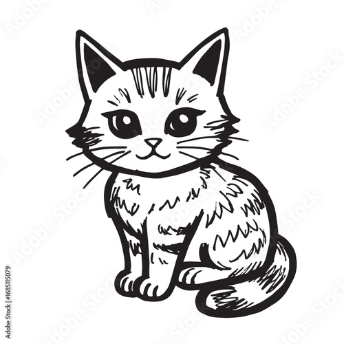 Obraz premium Cat Doodle Black and White Illustration Vector Image Cute Kitten Sketch Line...