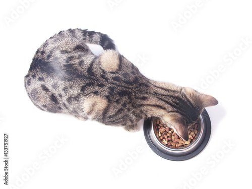 © Crazy nook, Fototapeta premium Cat eating dry food from a bowl.