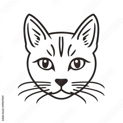 Fototapeta premium Cat face, line art, white background, pet portrait, design element