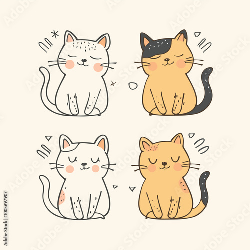 Obraz premium Cat Hand Drawn Doodle Vector Design