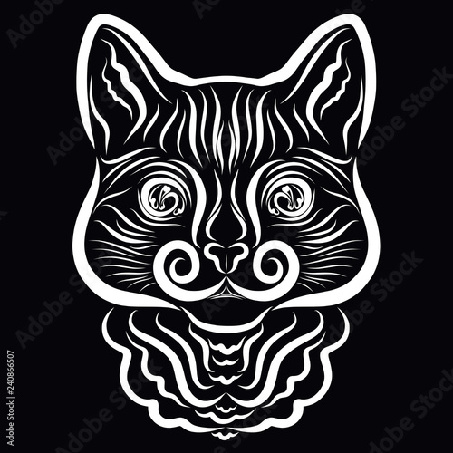 Obraz premium Cat head on a black background, white pattern
