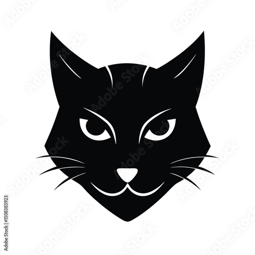 © Moriom, Fototapeta premium cat head with devil horns icon silhouette on white.eps