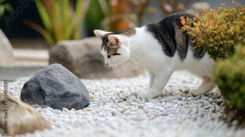 © musa, Fototapeta premium Cat in Japanese Garden (1)