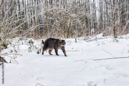 © Мария Тихонова, Fototapeta premium cat in the village in winter