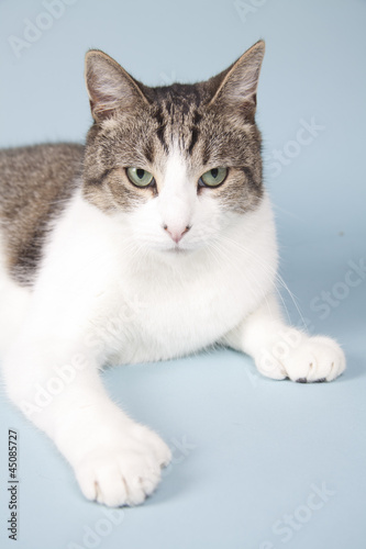 © By Glamstyle, Obraz premium cat laying on blue background