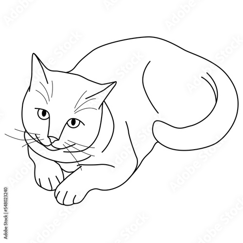 © Катерина Тарасенко, Naklejka premium Cat lies in linear vector graphics