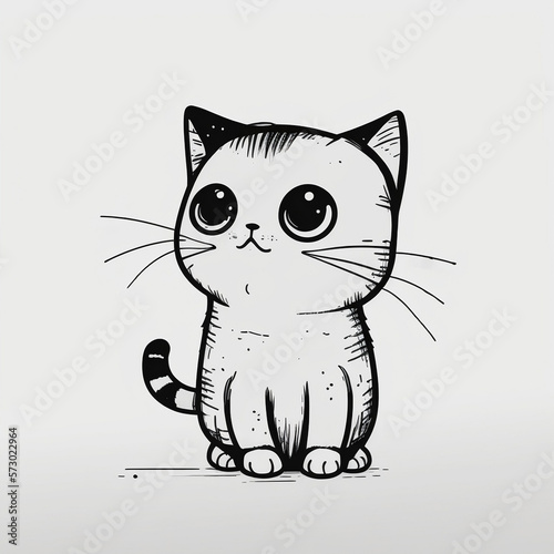 Obraz premium Cat line art cartoon, Black and white. Generative ai.