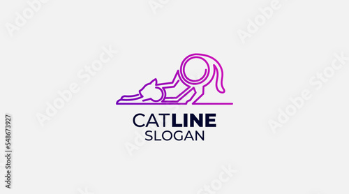 Obraz premium Cat line logo design vector icon illustration