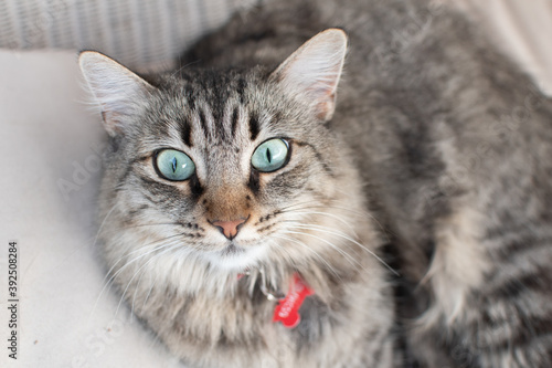 Fototapeta premium Cat looking at camera with green eyes.