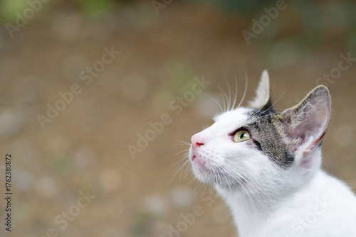 © Djavan Rodriguez, Obraz premium Cat looking up with curious expression