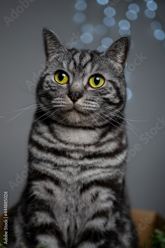 Obraz premium Cat looks friendly with big yellow eyes in portrait