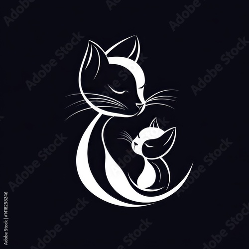 © Infinity Gallery, Fototapeta premium cat mom and son negative space logo icon illustration