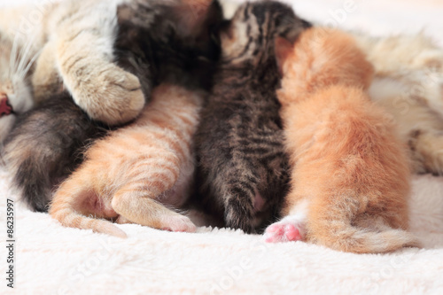 Obraz premium Cat nursing her kittens