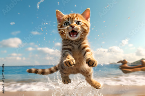 © fadi, Obraz premium cat on the beach