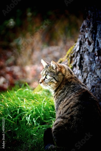 © Andreas, Fototapeta premium Cat outside next to a tree