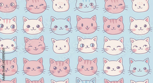 Obraz premium Cat Pattern with Cartoon Faces