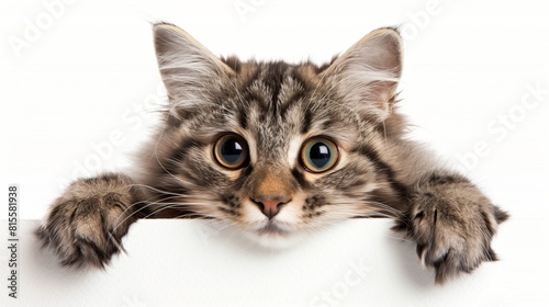 Obraz premium cat peeks out on a white background.