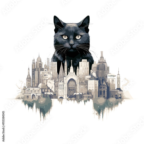 Obraz premium Cat Pet Animal Beauty Nature City Discovery Vector Graphic