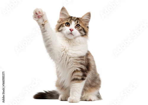 © Mr.PNG, Fototapeta premium Cat playful paw up isolated on a transparent background.