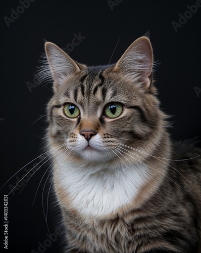 © Things and stuff, Obraz premium cat portrait view on plain black background