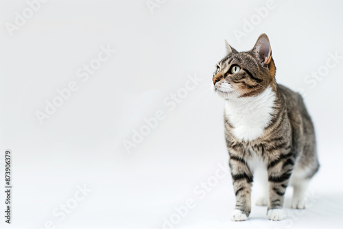 © song, Obraz premium Cat Posing on White Background with Blank Space
