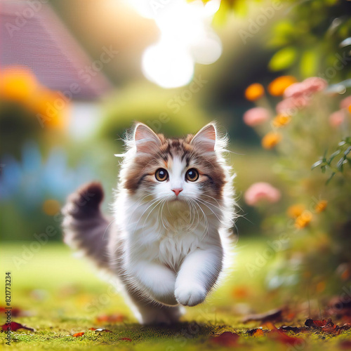 Fototapeta premium Cat running through a garden