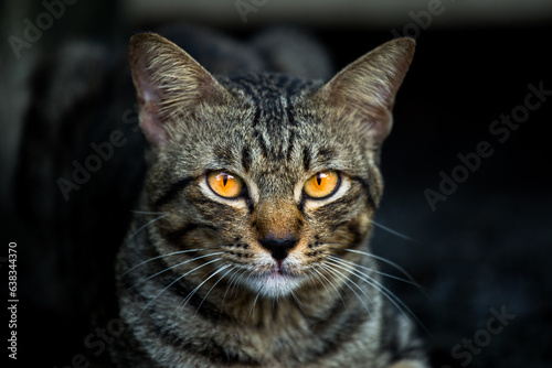 © Boykowit, Obraz premium Cat's dark camouflage While seeing the victim,Cat in the dark night