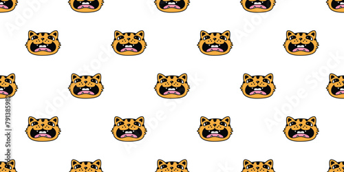 Obraz premium cat seamless pattern kitten smile laughing face paw footprint calico vector neko munchkin pet cartoon doodle tile background gift wrapping paper repeat wallpaper illustration isolated