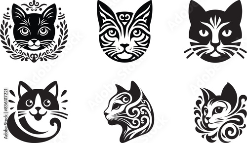 © ShantaRani, Obraz premium Cat silhouette against a white background vector illustrations
