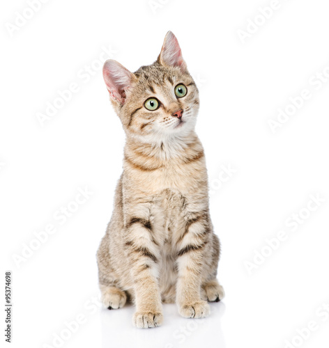 Fototapeta premium cat sitting in front and looking away. isolated on white backgro