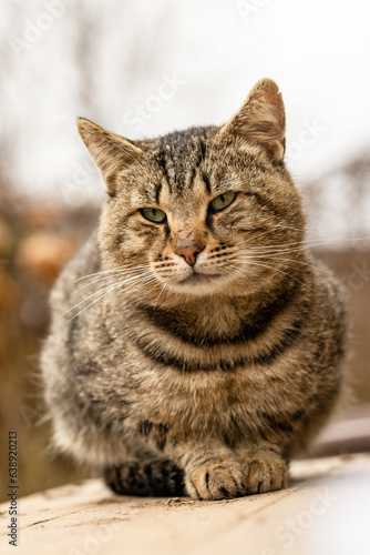 © Olga Seyfutdinova , Obraz premium Cat sitting on the porch
