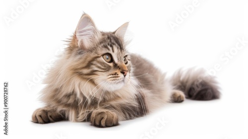 © AlfaSmart, Obraz premium Cat sitting or lying down, isolated on a white background