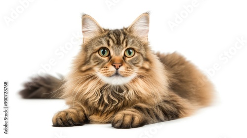© AlfaSmart, Obraz premium Cat sitting or lying down, isolated on a white background
