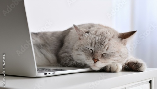 © ochikosan, Fototapeta premium ノートパソコンの上で寝ている猫(Cat sleeping on a laptop)