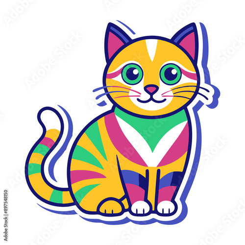 Fototapeta premium cat sticker image colorful style