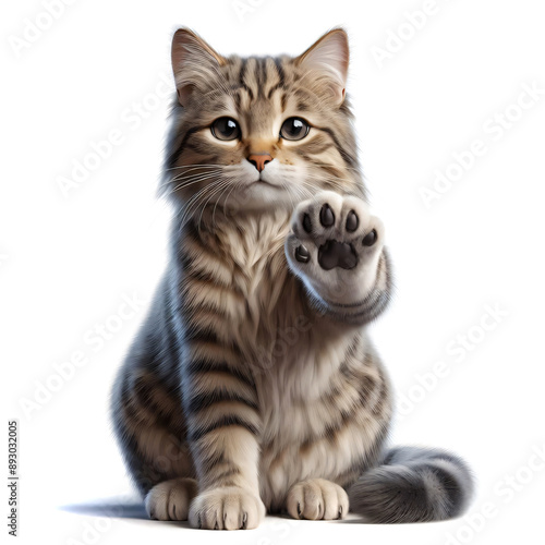 Fototapeta premium cat stop gesture halt hand command warning prohibit isolated white background