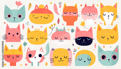 © kullaya05, Obraz premium cat vector cute cartoon generative AI