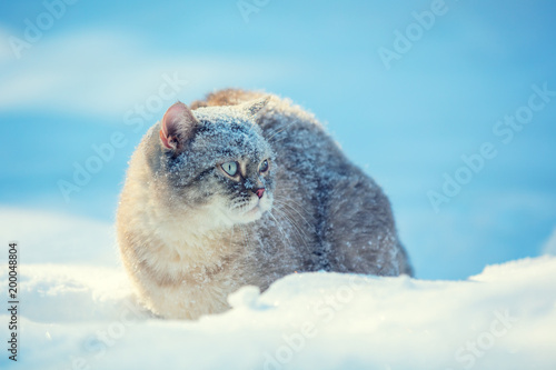 © vvvita, Obraz premium Cat walking outdoors in deep snow in winter