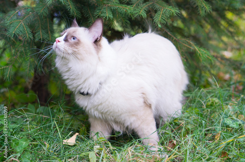 © Сергей Дудиков, Fototapeta premium Cat walks in the grass